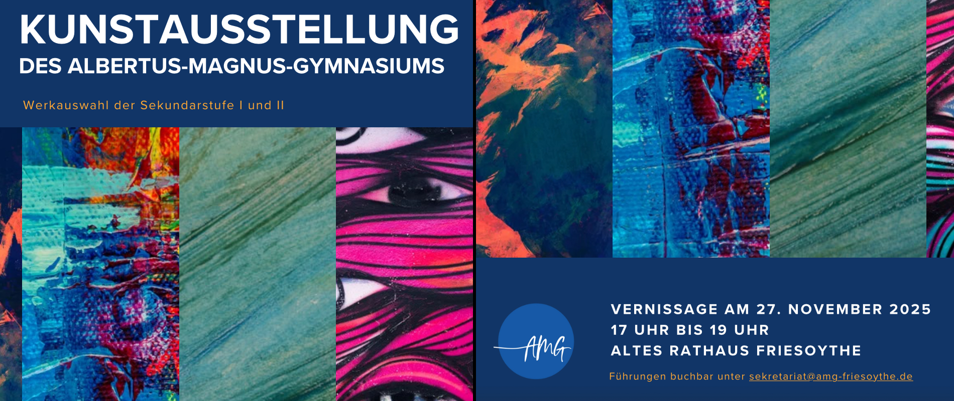 Am 27. November 2025 präsentierten Schülerinnen und Schüler des Albertus-Magnus-Gymnasiums eine eindrucksvolle Auswahl ihrer Kunstwerke im Alten Rathaus Friesoythe. Zahlreiche Eltern, Gäste und Interessierte nutzten die Gelegenheit, die kreativen Ergebnisse der Kunstkurse der Sekundarstufen I und II in einem festlichen Rahmen zu erleben.