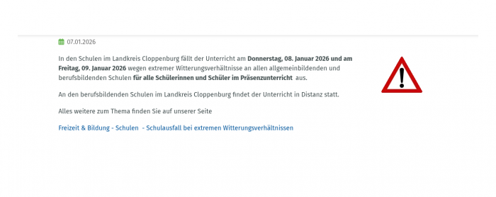 Am AMG fällt wie auch an allen anderen allgemeinbildenden und berufsbildenden Schulen Im Landkreis Cloppenburg am Donnerstag, 08. Januar 2026 und am Freitag, 09. Januar 2026 der Unterricht wegen extremer Witterungsverhältnisse für alle Schülerinnen und Schüler aus.