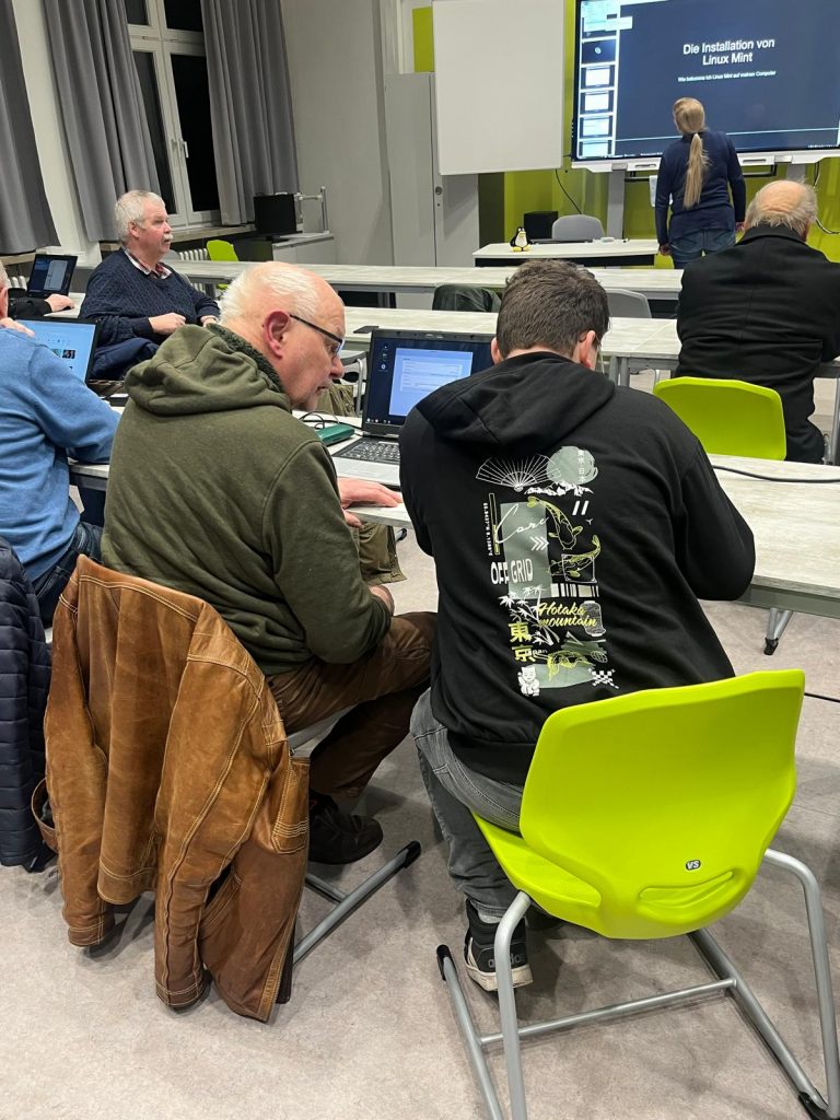 In einem dreistündigen Workshop wurden daher am Freitag zunächst das freie Betriebssystem Linux vorgestellt, bevor dann gemeinsam und unter mithilfe von Schülern und Mitgliedern von Repaircafe und meet&geek mitgebrachte Geräte umgestellt und damit für weitere Jahre der nachhaltigen Nutzung aufbereitet wurden.