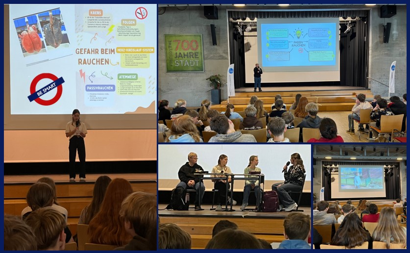 Im Rahmen dieses Kreativwettbewerbs führte die Klasse 7c am 19. März 2026 im Forum am Hansaplatz eine eigene Präventionsveranstaltung für die Mitschülerinnen und Mitschüler ihres Jahrgangs durch. Dabei brachten die jungen Schülerinnen und Schüler eine sehr abwechslungsreiche und kurzweilige Show auf die Bühne. Den Anfang machte ein selbst geschriebenes Schauspiel, gefolgt von einigen Kurzvorträgen und selbst gedrehten Reels für den eigenen Instagram-Account der Schule. Anschließend begeisterte ein in der Schule gedrehter Film die jungen Zuhörer ebenso wie ein abschließendes Quiz-Spiel, das viele Zuhörerinnen und Zuhörer selbst auf der Bühne aktiv werden ließ.