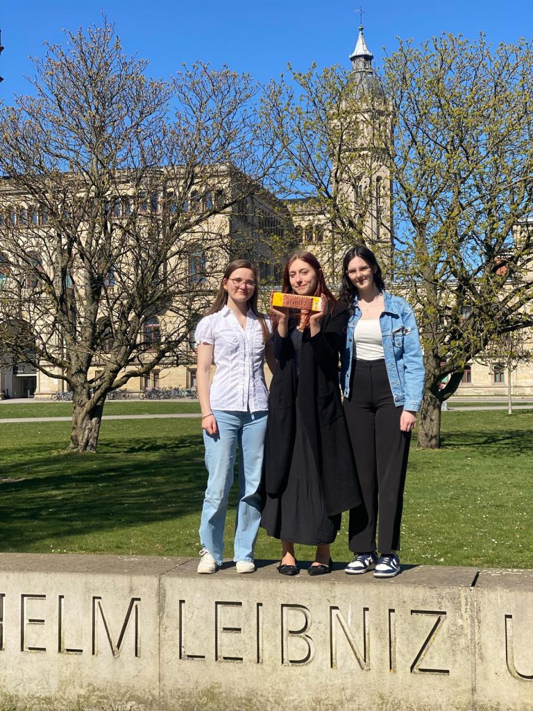 Am 3. April 2025 waren wir (Mia, Melanie und Lena aus der 11b) in Hannover für die Preisverleihung der 4-Science-Challenge 2025. Dies ist ein mathematisch-wissenschaftlicher Wettbewerb, der sich auf vier Monate verteilt. In jedem Monat gibt es einen Aufgabenteil, der innerhalb von vier Wochen zu bearbeiten ist. Vor der Verleihung der Preise an der Leibniz Universität Hannover wurden Projekte und im Anschluss Experimente vorgestellt. Insgesamt nahmen 26 Gruppen teil und wir können mit Stolz sagen, dass wir den 11. Platz erreicht haben. Dabei gewannen wir sowohl T-Shirts der Leibniz Universität als auch Studienguthaben im Wert von 100€.
